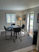 Stylish, fully furnished condo with modern décor in a quiet neighborhood. Main bedroom features a queen set; second bedroom doubles as a home office. Living room includes sectional, wall-mounted TV, and ottoman. Dining area includes table and chairs, and the kitchen is fully equipped (incl. cookware). In-unit washer/dryer, central HVAC, and private patio.