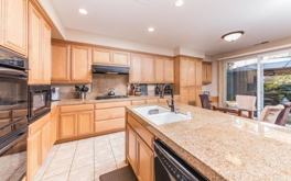The interior features laminate wood and tile flooring throughout for durability and easy upkeep. The kitchen includes granite countertops and ample cabinet space, providing both functionality and room to cook and gather.