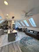 Welcome to 6 Fulton Street, Weehawken a truly one-of-a-kind third-floor residence in a charming three-family home. This 2-bedroom, 1-bath apartment is flooded with natural light, thanks to dramatic skylights and oversized windows throughout, creating a bright, airy, loft-like feel you won’t find anywhere else. The open-concept living space seamlessly blends the living, dining, and kitchen areas and features modern cabinetry, stainless steel appliances, and a center island with seating perfect for everyday living and entertaining. Additional highlights include central air conditioning for year-round comfort and wide-plank flooring that adds warmth and style throughout. Both bedrooms are well-sized and versatile, ideal for a primary bedroom, guest room, or home office. Unbeatable location just steps from Boulevard East, offering easy access to buses, and only minutes to the Lincoln Tunnel, NYC ferry, shopping, restaurants, and coffee shops.