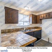 Step inside and enjoy an open-concept kitchen featuring A refrigerator and a stove, ample counter space, and appliance hookups.