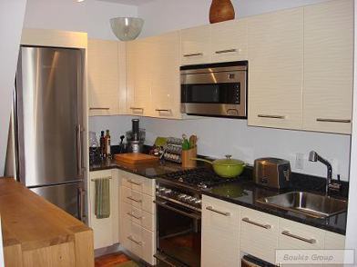 As you walk down the hallway you will find an extra large California closet on your left followed by a kitchen with magnificent finishes on the right. The kitchen features dark marble countertops, custom made bamboo cabinetry, and state-of-the-art stainless steel appliances. Futher down the hall is the oversized living area with an alcove allowing for plenty of space. The southern exposure brings in GREAT LIGHT.