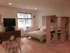 Williamsburg, 3 blocks south of Metropolitan Ave. Large open studio, 600 sq. feet, full-sized kitchen, renovated bath, 2 closets, 1 walk-in.Sunny, Southern exposure, elevator, laundry on premises, common roof deck, pets ok.6 minute walk to Bedford L, Lorimer L/G and Marcy Ave.