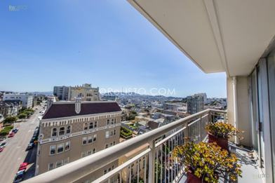 Premier Pacific Heights penthouse in full service building with spacious open floor plan. Large windows and two balcony to enjoy the amazing views of the city and bay. Modern kitchen featured in Gourmet Magazine with premier appliances. Front desk staff 24/7. One of the few heated lap pools is Pacific Heights is one level up.