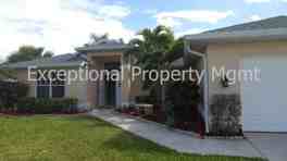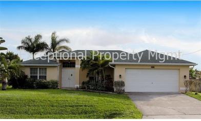 Do not miss this one! Lawn Service included! This spacious and beautifully kept home is centrally located to schools, shopping, and restaurants - including the beautiful Cape Harbour and all it has to offer! This great room floor plan boasts high ceilings and an open concept with large sliders to a south facing lanai. This home is tiled throughout and offers 3 bedrooms, 2 bathrooms, and an indoor laundry room. A fully upgraded kitchen with custom cabinets and granite counter tops along with stainless steel appliances, breakfast bar and a breakfast nook in the kitchen makes preparing those meals easy. The master bedroom is large with a slider to a private second lanai and a master bath with dual sinks. Conveniently located and ready for your enjoyment. Pets ok, with approval.