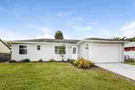 Step into this charming Palm Bay, FL rental home to find a three-bedroom and two-bathroom layout complete with 1,068 square feet of space, plus a two-car attached garage. The bright and sunny living room features a vaulted ceiling with a fan. You'll love the modern feel of the sleek white tile flooring. Nearby, the eat-in kitchen includes a pantry and long countertops. Additional highlights include a convenient pass-through window and a formal dining room just steps away. The primary bedroom has vinyl plank flooring and a neutral color theme, lending a modern feel to the space. You'll love having a walk-in closet and an en-suite bathroom. Outside, you can relax on the spacious concrete back patio. Sign up today to take a tour in person!