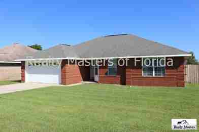 Wonderfully Immaculate home tucked in a neighborhood off Navarre Pkwy just minutes to Hurlburt Field AFB, white sand Navarre Beaches & easy commute to Eglin AFB. Popular split bedroom floor plan! Double car garage with automatic openers and a fully fenced back yard ~ Neutral ceramic tile throughout living room, kitchen, dining and both bathrooms ~ Spacious living room area adjacent to the formal dining room and kitchen. ~ A cute kitchen space including a newer refrigerator, icemaker, dishwasher, stove and newer built-in microwave ~ Wood laminate floors adorn the Master Bedroom suite with private bath boasting his/her closets with built in shelving, double vanity, and a deep tub. Carpet in guest bedrooms. Indoor laundry with extra storage & washer/ dryer hookups. You will love spending your weekends in this large fenced in backyard with open patio & Sprinkler system to keep this plush grass comfortable and green. Pet friendly( up to 2 pets) home with owner approval and $250 non-refundable pet fee per pet. (Aggressive breed dogs will not be considered.) Home is ready for move in February 14, 2020!!