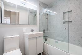 - Brand new open chef’s kitchen equipped with a breakfast nook, custom cabinetry, stainless steel appliances, quartz countertop and gorgeous glass tiles.