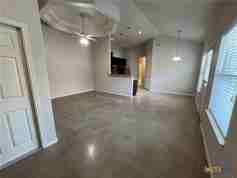 Indulge in this charming 3 bed, 2 bath duplex nestled in a quiet neighborhood with high vaulted ceilings and sleek stained concrete floors throughout. The kitchen offers ample cabinet space, while the garage hosts washer/dryer connections. Step onto the covered patio from the master bedroom, and enjoy the fenced backyard. With ceiling fans, a one-car garage, and a sprinkler system, comfort and convenience await in this delightful abode