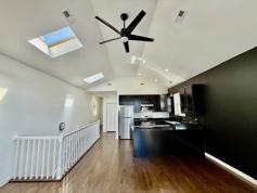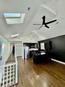 Available now! Bright Top-Floor 3 bedroom/2 bathroom unit in Garfield Park. This updated 3 bedroom, 2 bath top-floor unit features vaulted ceilings, skylights, and recently refinished hardwood floors and bathrooms (2025). The modern kitchen includes black cabinetry, granite counters, and stainless steel appliances. Enjoy two outdoor spaces-a front balcony and a spacious rooftop-perfect for relaxing or entertaining. Bedrooms offer great natural light, a walk-in closet in the primary. The bathrooms feature sleek marble-look tile and matte black fixtures. Additional perks: Central HVAC, and gated entry. Convenient location near shops, transit, and parks.
