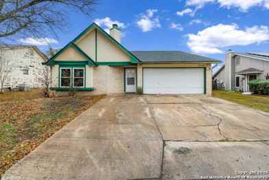 This spacious one-story home offers an open floor plan with high ceilings and a cozy fireplace that connects the living and dining areas. The large eat-in kitchen includes ample cabinet space and a refrigerator, with a convenient laundry/utility room nearby. Generously sized bedrooms provide comfort, while the master suite boasts a walk-in closet and a full bath. Step outside to a huge wood deck, perfect for family gatherings and outdoor grilling. Conveniently located near Randolph Air Force Base, shopping, dining, and entertainment. Pets considered on a case-by-case basis.