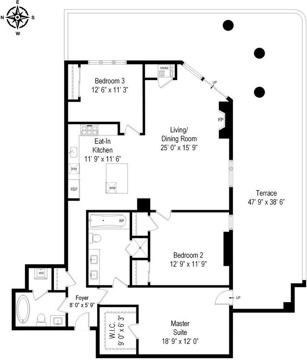 This beautiful 3 bedroom/2bathroom unit has a spacious L shaped terrace that is over 840 square feet looking out into the Southeast side of Michigan Ave, Soldier Field, and John Hancock Building. It is one of the only two units in the building with this enormous sized terrace. Great layout with a spacious living room/dining room, wood flooring throughout the home, stainless steel appliances in an island kitchen, in unit laundry, central air, and heat. Full of natural light. The property hosts on-site parking at the same level of the unit. Easy access to CTA bus and train station, Roosevelt Red, Orange, and Green Lines. One parking spot is included in rent, and a second parking spot available at a $200 fee.