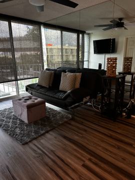 A 2/1 bath condo close to the University of Hawaii with an assigned parking stall. Fully furnished with a flat screen TV, two couches that converts into a bed, 2 beds and dining table. Appliances included are refrigerator, stove, garbage disposal, and microwave. Laminate and tile flooring. There are window A/C in the living room and the two bedrooms and ceiling fan in the living room. Amenities are common laundry, swimming pool, guest parking with security guard. Utilities included are water and sewer.