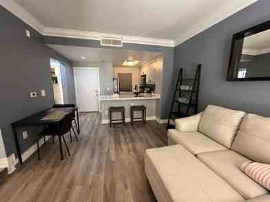 Located in 16 Acre Lushly Landscaped Property Just 1 1/2 Blocks from Main Vegas Strip, unit is equipped with quartz counter tops, stainless steel Refrigerator, Range, Microwave and Dishwasher appliances and large covered patio.
