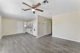 Rent this beautifully updated, charming single-family residence, featuring an open layout with wood-look luxury vinyl floors, a bright kitchen with crisp white cabinetry, a sleekly renovated bathroom, and a generous, fenced backyard with no HOA, is now available as a highly desirable rental property perfect for tenants seeking privacy and space.
