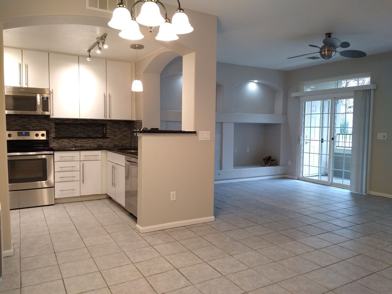 The kitchen is a chef's delight with its granite counters and top of the line stainless appliances, including an electric stove/oven, microwave and dishwasher. You also have a super walk in pantry!