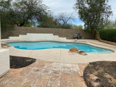 Come for the backyard alone!! Corner lot with huge backyard with faux grass for easy maintenance, pergola and pool. All of this and a well appointed home with great layout with split floor plan and an extra living room. 3 bedroom, 2 bathroom and 2 car garage. One of the best lots in the neighborhood. Brand new carpet, updated paint, kitchen on the back of the home boasts ease for gatherings with all appliances including the washer and dryer. Good storage, Fireplace and tile throughout the living area. Air conditioning was replaced in 2023. Separate patio entrance to the primary suite. This property has easy access to Cave Creek Road, Schools, restaurants, shopping and so much more!! This property is move in ready, Come, Show and Rent today!!!