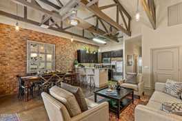 Experience turnkey luxury living in this modern rustic loft-style condo located in a beautiful Italian-inspired gated community on El Paso's West Side. This multi-level residence comes fully furnished and offers one bedroom, one bath, and a private one-car garage. With exposed wood beams, high ceilings, brick accent walls, and polished concrete floors, it combines elegance and comfort-perfect for those seeking high-end, move-in-ready accommodations in a prime location close to shopping, dining, and entertainment.