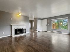 AVAILABLE NOW! This charming home, tucked away and surrounded by beautiful mature trees, offers three comfortable bedrooms, two bathrooms, and a kitchen with a dining area that opens to the outdoor space. The bright living room features a wood-burning fireplace and large west facing windows that fill the space with natural light and showcase beautiful evening sunsets. Enjoy peek-a-boo views of the water from the living room and the spacious deck. The home also includes in-unit laundry, a one car garage, and a generous yard.