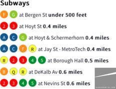 • 2/3/4/5/R/A/C/G/F with elevator subway station entrances