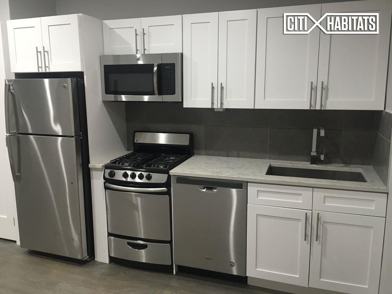 **!NO BROKER FEE!** This beautiful home has undergone a complete gut renovation! Be the absolute first to live in this wonderfully newly renovated home! The kitchen is decorated with high end stainless steel appliances, a dishwasher, microwave and a washer and dryer. The bathroom has designer Italian marble floors, brand new fixtures and a glass enclosed shower with a detachable, pressurized shower head. New light grey hardwood flooring throughout and a fresh coat of Marilyn Monroe Grey paint through the entire apartment.
