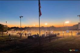 Just reduced and one-of-a-kind — this single-story duplex backs up to an active private rodeo arena and horse facility! Enjoy the view without losing your peace and quiet. Open floor plan with granite island kitchen, crown molding, and no carpet — only easy-care wood-look tile throughout. The primary suite features a spa-style dual-head shower, double vanities, and a spacious closet. Relax on the covered patio under the arena lights and Hill Country skies. Fully fenced backyard, stainless appliances (fridge included), sprinkler system, metal roof, and front yard care included. Pet friendly and move-in ready!