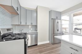 This recently renovated second-floor unit features three bedrooms and one full bathroom. The kitchen includes stainless steel appliances and quartz countertops, and the unit has in-unit laundry. Additional features include a back porch, luxury vinyl plank flooring throughout the unit, and close proximity to Pleasure Bay. Pets may be welcome. Available June 1.