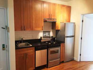 Just 2 flights up to this spacious 1 bedroom. Open plan kitchen is offering stainless steel appliances with dishwasher and microwave. Bright bedroom will has customized closet and will accommodate Queen bed. Full windowed bathroom.