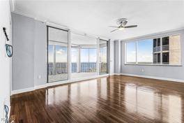 29th floor condo at fabulous High Point Place. Two bedrooms plus a den, two baths plus powder room. Over 2,200 square feet of luxury living! Spectacular river & city views, both day & night! Spacious great room. Custom kitchen with walk-in pantry. Dining area for "formal" dining plus breakfast bar. Ideal for those working from home. Split bedroom floor plan ensures guest peace & quiet after a busy day enjoying all that Fort Myers has to offer. Assigned parking spot in Level 2 garage. HPP amenities include: well-equipped Fitness Center with saunas, Gathering (social) Room, pool & hot tub, BBQ grills, and library. Short walk to downtown dining, shopping and entertainment. Publix grocery store is two blocks away. NO smoking, NO pets per association rules. Great room and den furnishings NOT included.