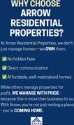 At Arrow, we don’t just manage properties—we build communities. When you choose to rent with us, you're not just getting a house—you’re coming home.