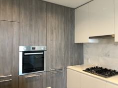 - Side-by-side Bosch washer and dryer with space to fold, store and hang items above