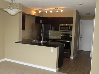 This suite features upgraded stainless steel appliances, tile backsplash, granite throughout, in-suite laundry and a flush eating bar overlooking the bright, spacious living room. Both bedrooms are generous and have ample closet space. The balcony faces south to get plenty of sunshine through out the day. The unit also has 1 assigned outdoor parking stall.