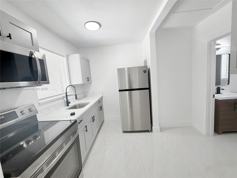 Beautifully updated with brand-new kitchen, new appliances, new porcelain flooring, two new A/C units, and a modern bathroom with custom closet in the bedroom.