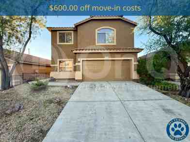 2,179 Sq Ft! 3 bedroom, 2.5 bath two-story home in Vail’s desirable Rancho Del Lago neighborhood. Step inside to discover a bright and inviting layout featuring spacious living areas and freshly painted interiors, perfect for entertaining family and friends. The charming kitchen includes a refrigerator, oven, and dishwasher, with ample cabinetry and counter space for meal prep and storage. Natural light fills the living spaces, highlighting the carpet and tile flooring and creating an open, airy atmosphere. A flexible bonus space provides the ideal home office or den. The primary suite boasts a walk-in closet and an ensuite bath with dual sinks and a step-in shower, while the additional two bedrooms are generously sized with ample closet space, perfect for family or guests. The conveniently located laundry room includes washer/dryer hookups and additional storage, complemented by centralized whole-home Ac for year-round comfort. Parking is provided in the 2-car garage, offering extra storage space. Outdoors, enjoy a fenced backyard with a covered patio, perfect for summer barbecues or quiet relaxation. Set in the Rancho Del Lago community, residents have access to nearby parks, schools, shopping, dining, and entertainment, all within a convenient Vail location.
