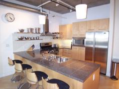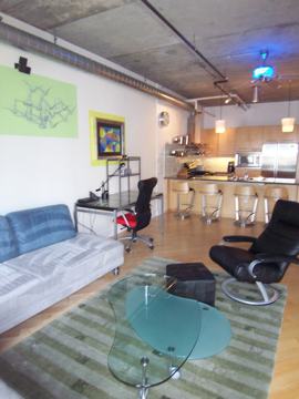 Absolutely beautiful studio just on the east side of Millennial Bridge across the street from the park and riverfront. Fully furnished with unique furniture, art and wood floors throughout. The kitchen is huge with all stainless steel appliances, granite counters and lots of storage. Underground parking and storage is included. New TV and Washer/Dryer