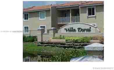 Beautiful Villa Doral features a gorgeous First Floor 2 bedrooms, 2 bathrooms, patio, washer and dryer inside unit. Stainless-Steel Appliances. Freshly painted. Ceramic tile floor throughout unit, Gated community, amenities including manned gate security, reserved and plenty of guest parking and community pool. Walking distant from A+ elementary and Middle school. Easy to Show, call me or text me!!!