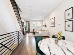 Enjoy multiple outdoor spaces including a private backyard patio and a massive rooftop deck with stunning skyline views, perfect for relaxing or entertaining. Additional features include in-unit laundry, modern designer bathrooms, and abundant natural light.