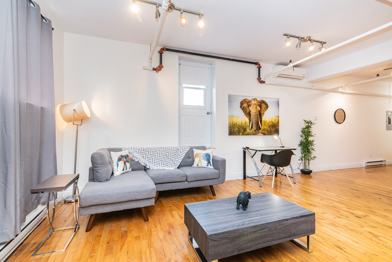 Meubles, lit, draps, TV, hydro, WiFi