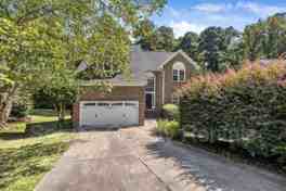 4 bedroom single family home located on wooded lot in a private cul-de-sac. Landscaped front yard and beautiful front brick. First floor has wooden floors, carpet, and tile. Living room features great lighting and a wood burning fireplace. Kitchen has granite counter tops and an island( stove top will be replaced before move in), attached is the formal dining and breakfast nook. Master bedroom is spacious with tons of storage. Also, has a walk-in closet, master bath with shower and tub. Large backyard deck with scenic views. Near in good schools in Cary.