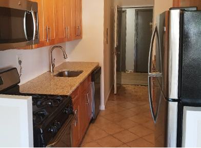 A large three-bedroom apartment with stainless steel kitchen appliances, granite countertops, wooden cabinets and hardwood floors. This apartment has plenty of closet space and natural lights from the windows. Contact us today for more information.