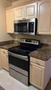 Townhouse includes 2 car garage with built in storage racks, fenced patio area in rock landscaped backyard, heat/air conditioning, washer/dryer hookups, hardwood floors downstairs and carpet upstairs, gas fireplace in living room, granite counter tops/all stainless steel appliances: dishwasher/refrigerator/microwave/oven/glass top electric stove, commercial pull down sink faucet in kitchen. Master bedroom upstairs has a walk-in closet with stone tile countertops in Master bathroom.