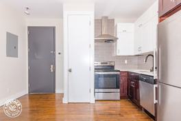 This apartment features a spacious living room, 3queen-sized bedrooms, stainless steel kitchen, modern bathroom, hardwood floors, and windows that let in natural light throughout.