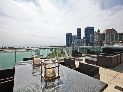 Rare & extraordinary penthouse w/panoramic views of lake ontario & city skyline. Sun-drenched corner unit w/ multiple walk-outs to 789 sqft wrap-around terrace outfitted w/ sound system and gas bbq. Soaring-high ceilings, floor-to-ceiling windows, gourmet kitchen. Spa like master retreat w/ ensuite bath, w/i closet. One of a kind lakefront oasis boasting elegance in over 2100 sqft of luxury living. Easy access to ttc, gardiner, and express bus to dt toronto.