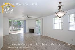 Charming lower level two-bedroom, two-bathroom condo in the desirable Siena Villas community. Fresh paint and low-maintenance tile flooring throughout. The cozy living room features a corner fireplace, ceiling fan, and two sliding glass doors, one leading to a private balcony and the other to a spacious wraparound patio. The dining area connects seamlessly to the kitchen, which has been updated with new countertops and includes all essential appliances, including a gas stove, single oven, dishwasher, refrigerator, and countertop microwave. The primary suite offers a walk-in closet and an attached bathroom with a walk-in shower. There is a guest bedroom and a full guest bathroom. Additional highlights include a laundry closet with a stackable washer and dryer, two assigned parking spaces in a secure subterranean garage, and convenient access to the lower level. Water and trash are included in the rent. Enjoy HOA amenities, including a pool, spa and tennis courts. Located close to shopping, restaurants, and the 5 freeway. *Owner may consider a small pet.