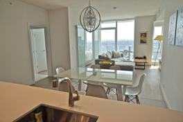 Live above it all in this stunning 2-bedroom corner sub-penthouse, featuring panoramic mountain, water & city views in the heart of Downtown South.