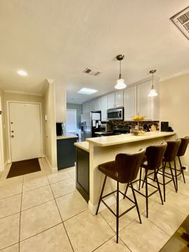Low maintenance living! This cozy condo located conveniently in the mature tree oasis that is Edgecliff. Nestled in between two pharmacy-convenient stores, restaurants, coffee shops, and walking distance to the amazing El Gallito Taco Truck. Enter the gated community to park your car in the dedicated covered parking spot or directly in front of your unit. This ground level access welcomes you to the open floor plan - fantastic for gathering with guest half bath, walk in pantry, solid counters, painted cabinets, stainless appliances, and NO CARPET! Refrigerator, washer, & dryer included... oh also WATER! Walk directly out the living room sliding glass door onto the covered patio with extended sitting area. The large tree & green space area gives the feeling of your own backyard WITHOUT having to manage any of it. Upstairs enjoy 2 large ensuite bedrooms with private bathrooms. The primary bedroom offers double closets, access to the floored attic (Abundance of space for extra storage), & its very own private balcony. When you aren't relaxing next to the fireplace in living room with easy access to your built in book case take a very short walk to enjoy the neighborhood pool, hot tub & clubhouse. If you are looking for a centrally convenient location that is quiet, well kept, gated, & an extremely low maintenance place to call home, THIS IS THE ONE.