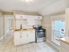 This upper level duplex, offers newly updated kitchen and bathroom. The kitchen has beautiful butcher block counters and new stainless steel appliances. There are original hardwood floors in most of the living space. The three bedrooms provide ample space, and should fit most bedroom sets.