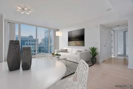 In the heart of Yerba Buena between SOMA, South Beach, and the Financial District, this stunning 2 bedroom plus den, 2 bathroom condo exudes luxury with its high-end chef's kitchen featuring Viking appliances; hardwood floors; and floor-to-ceiling windows offering an abundance of natural light. The oversized peninsula in the open-concept kitchen makes entertaining a must and also provides the perfect mixture of form and function. Off the master bedroom, a den provides ample space to set up a nursery or home office. An additional bedroom and a guest bathroom complete the floor plan. An in-unit washer/dryer, air-conditioning, and 1-car parking round out this home. Blu is the highest quality boutique high-rise you can find in San Francisco, located in the heart of the Yerba Buena neighborhood. As soon as you enter the lobby, you feel the spa-like atmosphere, and there is great attention to detail throughout the building. There are only six homes per floor, with wide hallways for a feeling of openness. Amenities include a 24-hour lobby attendant, concierge service, and a rear garden with a fountain, barbecue, and catering facilities. Built in 2009, Blu is the modern city home of your dreams: the perfect fusion of form and function, elegance and distinctiveness. This intimate urban high-rise community offers total immersion in ideal design, all in the heart of Yerba Buena/South Beach. Yelp, Google, Salesforce, Linkedin, Riverbed Technology, and other start-up and tech companies are just a few blocks away. Live close to downtown, the Financial District, Union Square, the Embarcadero, the Ferry Building, AT&T Park, and world-renowned restaurants and nightlife. There is also easy access to public transportation and freeways including Montgomery Street BART, Caltrain, and the Bay Bridge. Come make this amazing residence your home. Unit Features: - 2 bedrooms plus den, 2 bathrooms - 1,230 sq. ft. per tax records - Floor-to-ceiling windows - Gourmet kitchen features granite countertops, peninsula, and high-end stainless steel appliances including Viking gas stove/oven, refrigerator, built-in microwave, Bosch dishwasher - Master bedroom with en-suite bathroom - Office/den off the master bedroom - Second bedroom and guest bathroom - Wood floors throughout foyer, kitchen, and living/dining area; carpet in bedrooms - Central heat and air conditioning - In-unit washer/dryer - 1-car parking - Sorry, no pets Building Features: - 24-hour lobby attendant - Concierge services - Rear garden with fountain, barbecue, and catering set-up facilities - 2 high-speed elevators - Controlled-access garage with bike storage - Automated car parking system - Walk Score of 96, Transit Score of 100 Photos are a virtual representation of the property staged with furniture. They are an approximation and not an actual representation of how the property currently looks.+