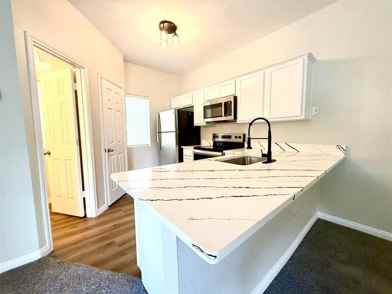 Pet FriendlyFully refreshed and thoughtfully updated corner-unit townhome located just minutes from the University of Texas at Arlington. With tasteful renovations, abundant natural light, and a smart layout, this property offers comfort, style, and convenience all in one. As you step inside, youll immediately notice the fresh interior paint and brand-new flooring throughout, giving the home a crisp and modern feel from top to bottom. The kitchen has been beautifully upgraded with sleek quartz countertops, freshly painted cabinetry, and a complete set of brand-new stainless steel appliances, including an electric cooktop, dishwasher, microwave, and refrigeratormaking both everyday living and entertaining a joy. Upstairs, youll find two generously sized bedrooms, each with its own private en-suite bathroom and plenty of closet space. A convenient half-bath is also located on the second floor, offering added flexibility for guests or shared living. Each bedroom features a brand-new ceiling fan for comfort and efficiency, and as a corner unit, the home enjoys an abundance of natural light that enhances every space. Additionally, the roof has been updated with a new pipe jack boot, ensuring long-lasting protection and peace of mind.