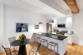 Bright 1-bedroom with home office apartment with exposed beams and hardwood flooring in the unit, as well as an en-suite bath in the master bedroom.