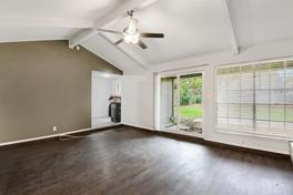 Beautifully updated three bedroom two bathroom home offering a spacious and functional layout with recent interior improvements throughout. The living area features vaulted ceilings with exposed beams, a wood burning fireplace, and large windows that bring in excellent natural light. A sliding door provides easy access to the backyard and patio.